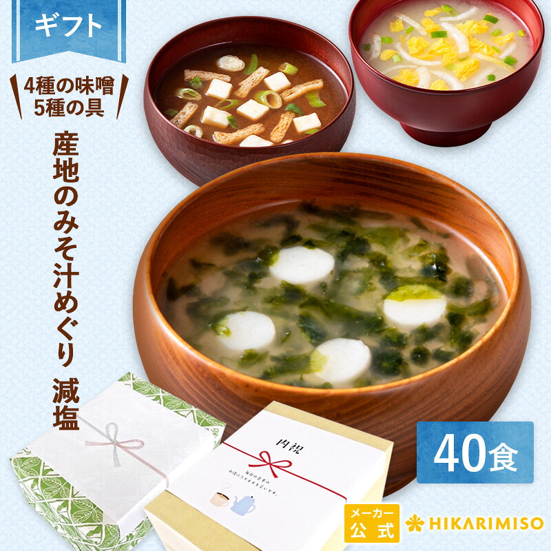 【ギフト用・送料無料】ひかり味噌 産地のみそ汁めぐり 減塩 40食 即席 インスタント 食品 選べる セット 常備食 お弁当 仕送り 朝食 ランチ ひとり暮らし 単身 詰め合わせ 簡単 便利 即席 手軽 自宅用 低塩 塩分控えめ 仕送り おうちごはん ひかり味噌 選べるのし 包装