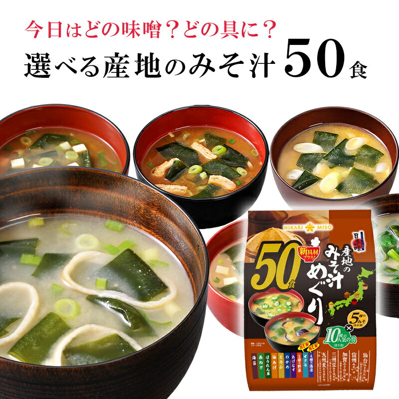 産地のみそ汁めぐり 減塩 40食 (×1箱) 即席 インスタント 食品 選べる セット 常備食 お弁当 仕送り 朝食 ランチ ひとり暮らし 単身 詰め合わせ 簡単 便利 即席 手軽 自宅用 低塩 塩分控えめ 仕送り おうちごはん ひかり味噌 送料別